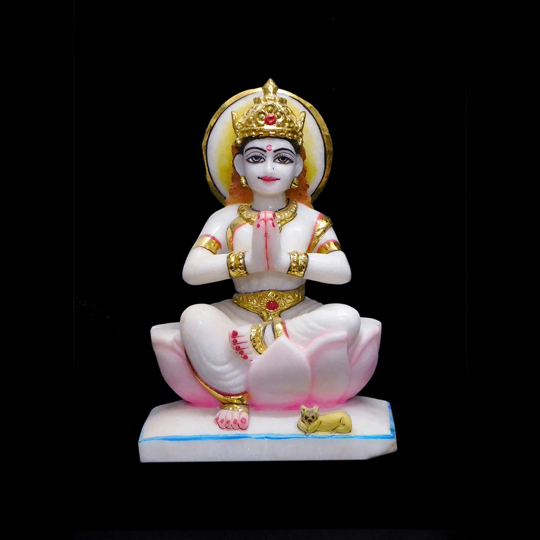 This stunning statue beautifully captures the divine grace of Mata Parvati. Expertly handcrafted from premium Makrana white marble, it features intricate golden embellishments and a striking chakra behind her head, symbolizing purity and spiritual power. Bring home this exquisite masterpiece and invite the blessings and elegance of Goddess Parvati into your sacred space.