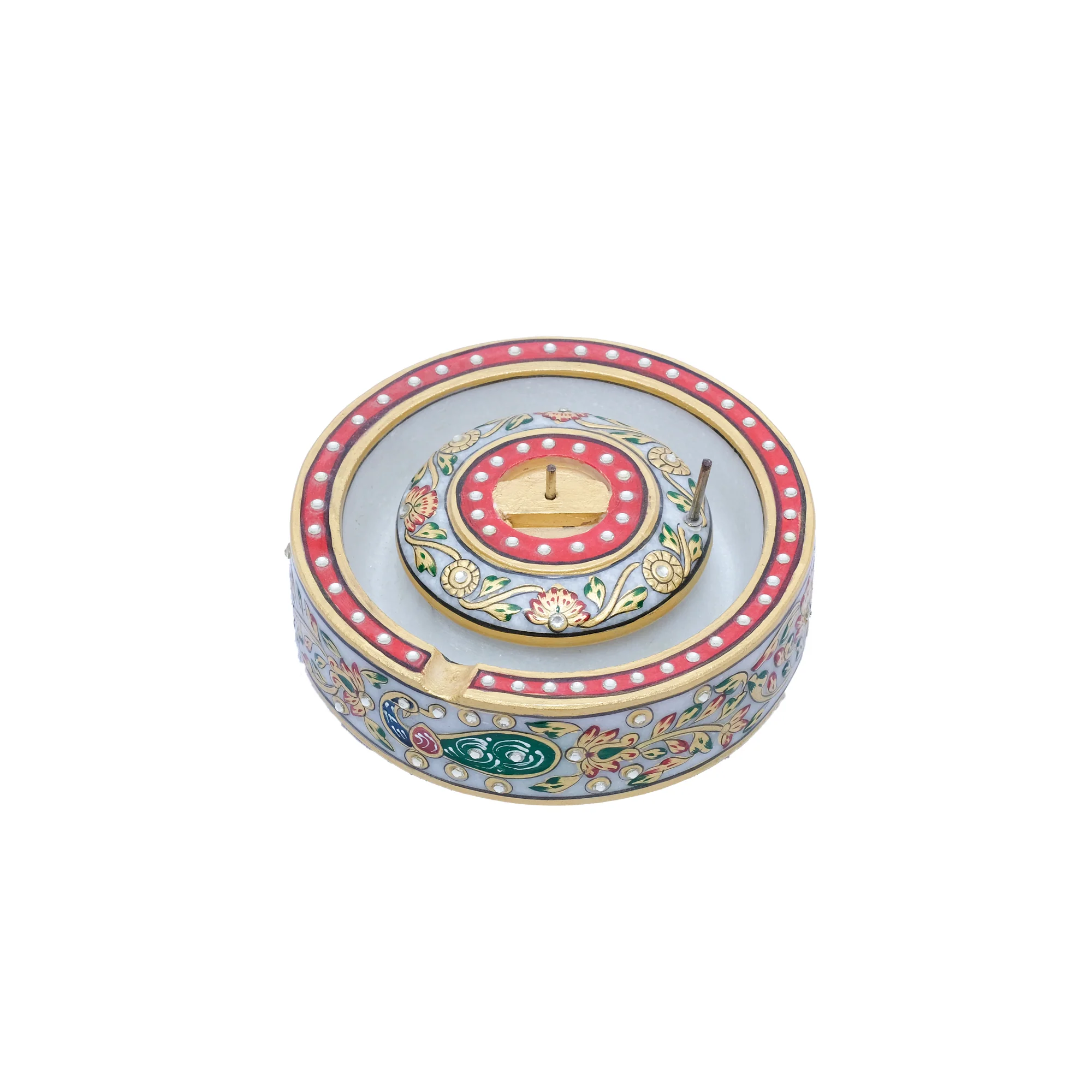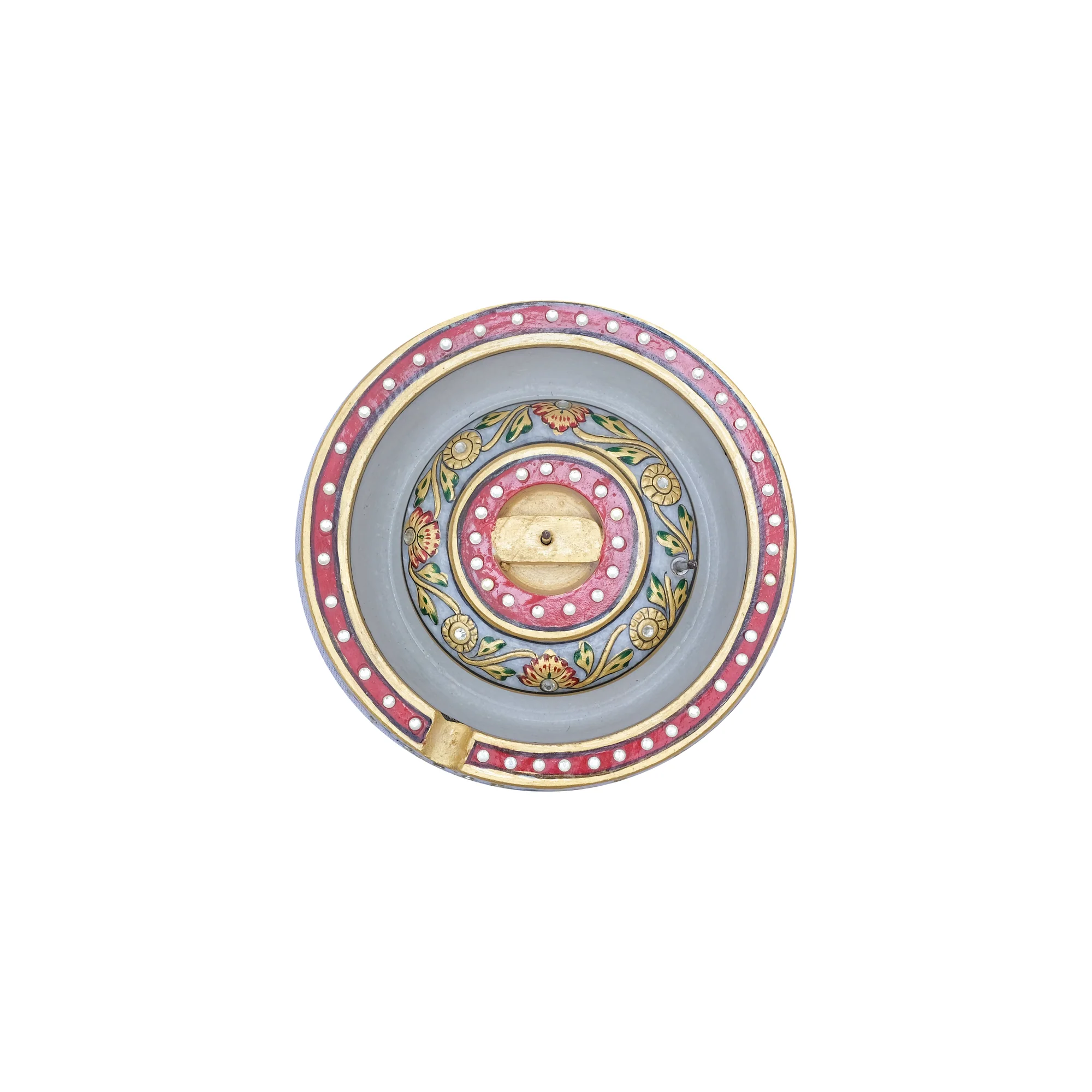 Carved from pure white marble in a graceful leaf shape, this bowl features intricate multicoloured floral handpainting by skilled artisans. Adorned with sparkling Kundan stones, it exudes a rich and regal charm. Perfect for display in your crockery collection or as a thoughtful gift for loved ones .