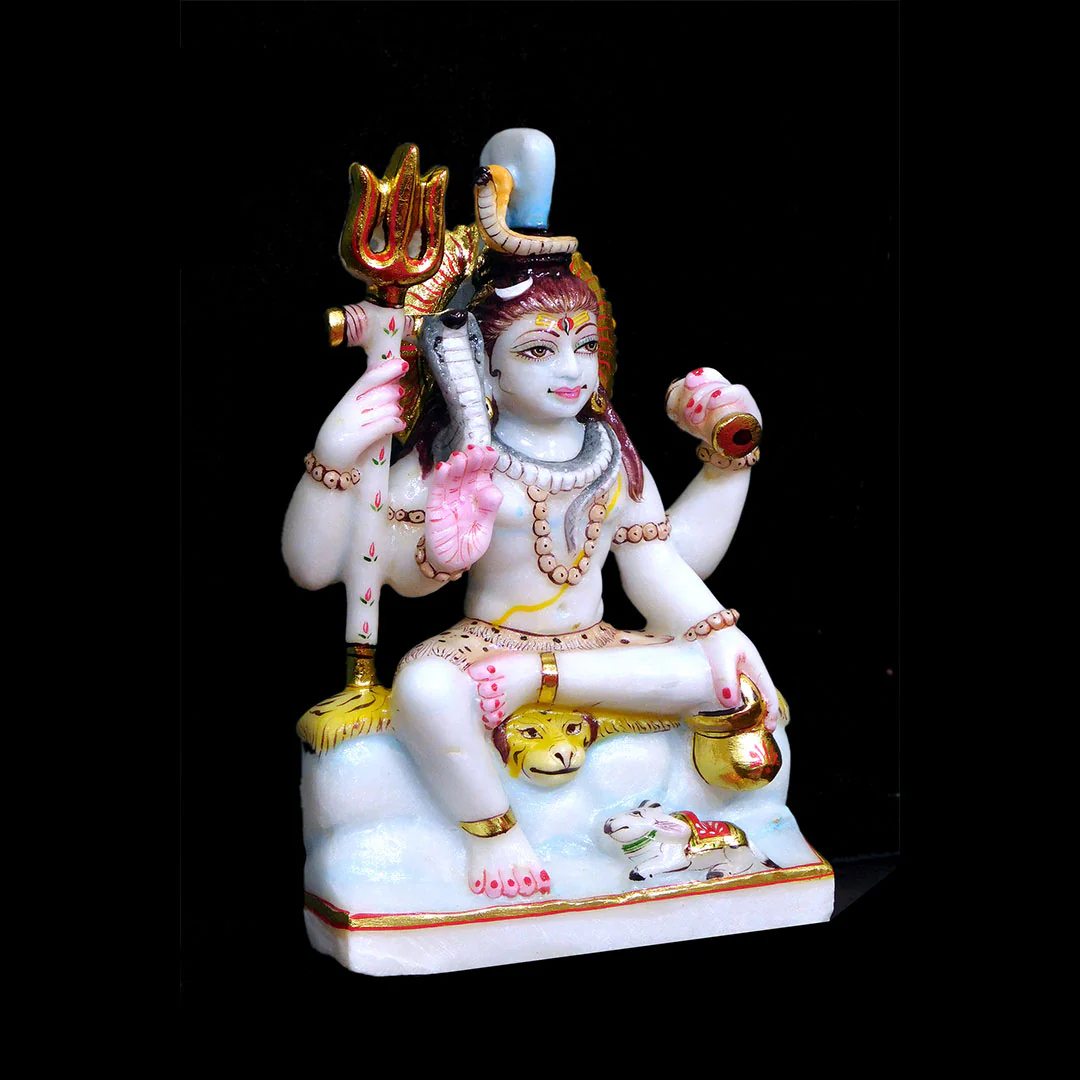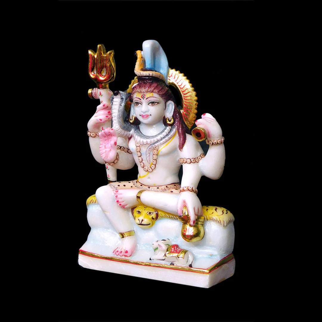 Experience the divine presence with this lifelike Shiv Ji statue, intricately detailed and polished to perfection. The flowing Ganga from his jata adds serenity to this powerful depiction, making it a magnificent addition to any sacred space.