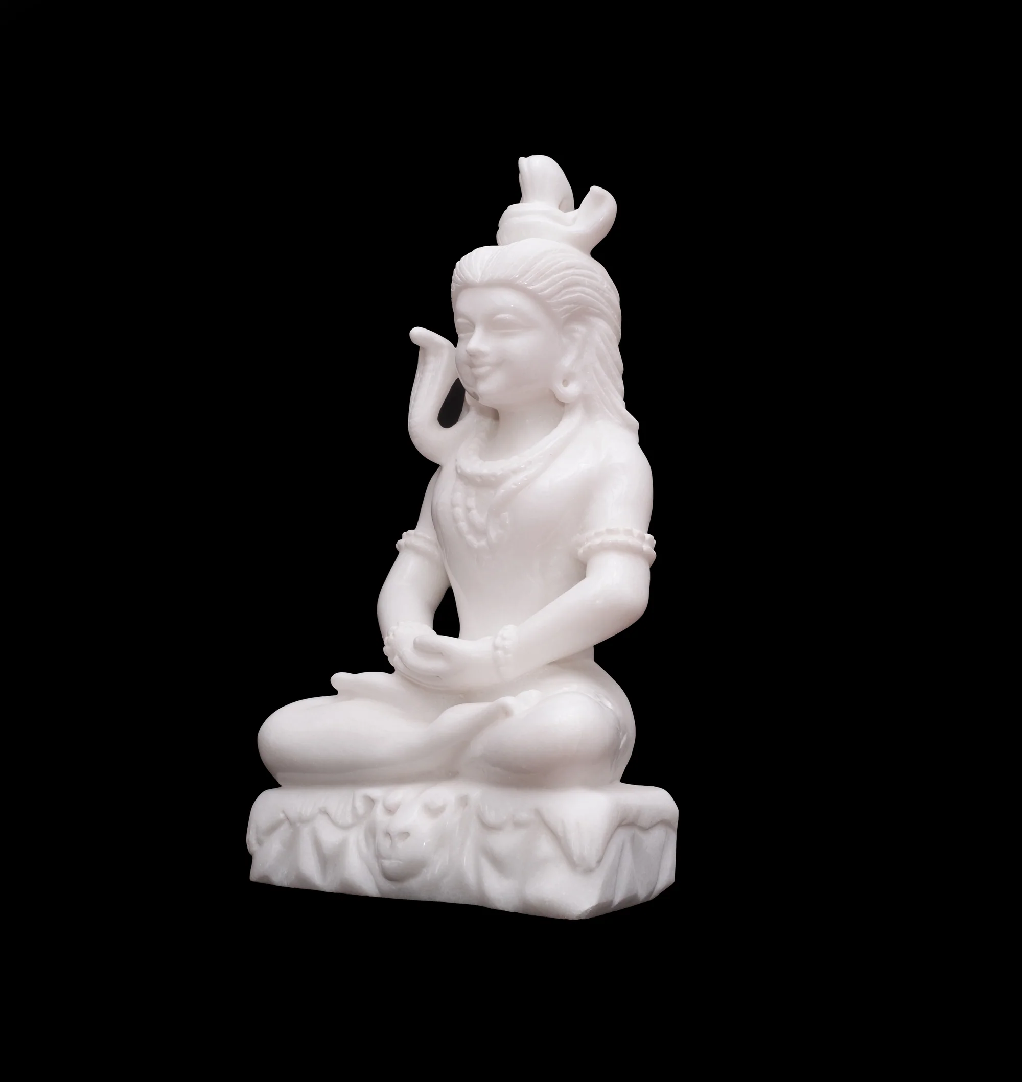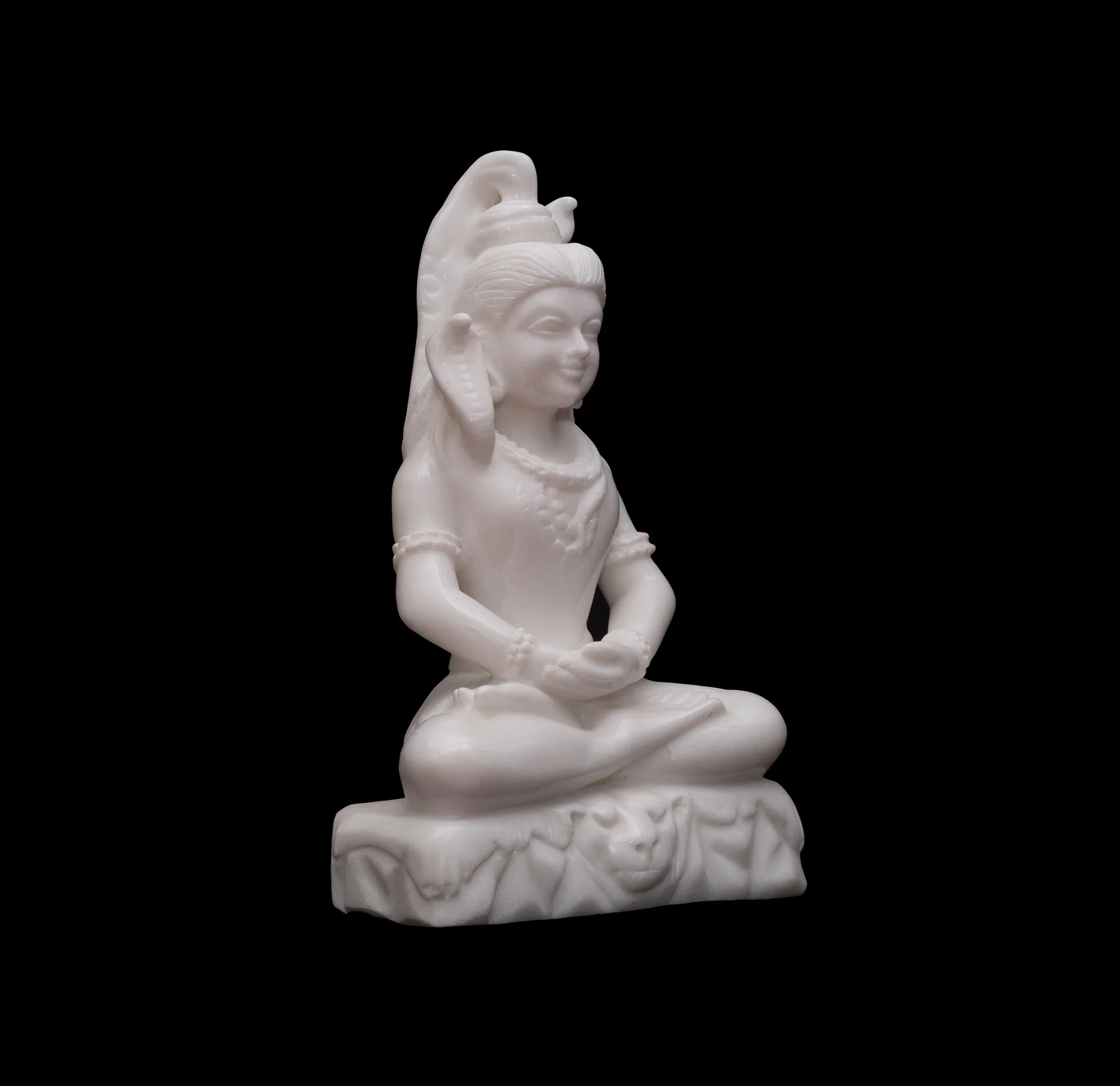 This exquisite statue of Lord Shiva is meticulously hand-carved from pure white marble by our skilled artisans. Crafted with devotion and precision, each masterpiece takes over a week to complete, reflecting the true essence of timeless artistry.