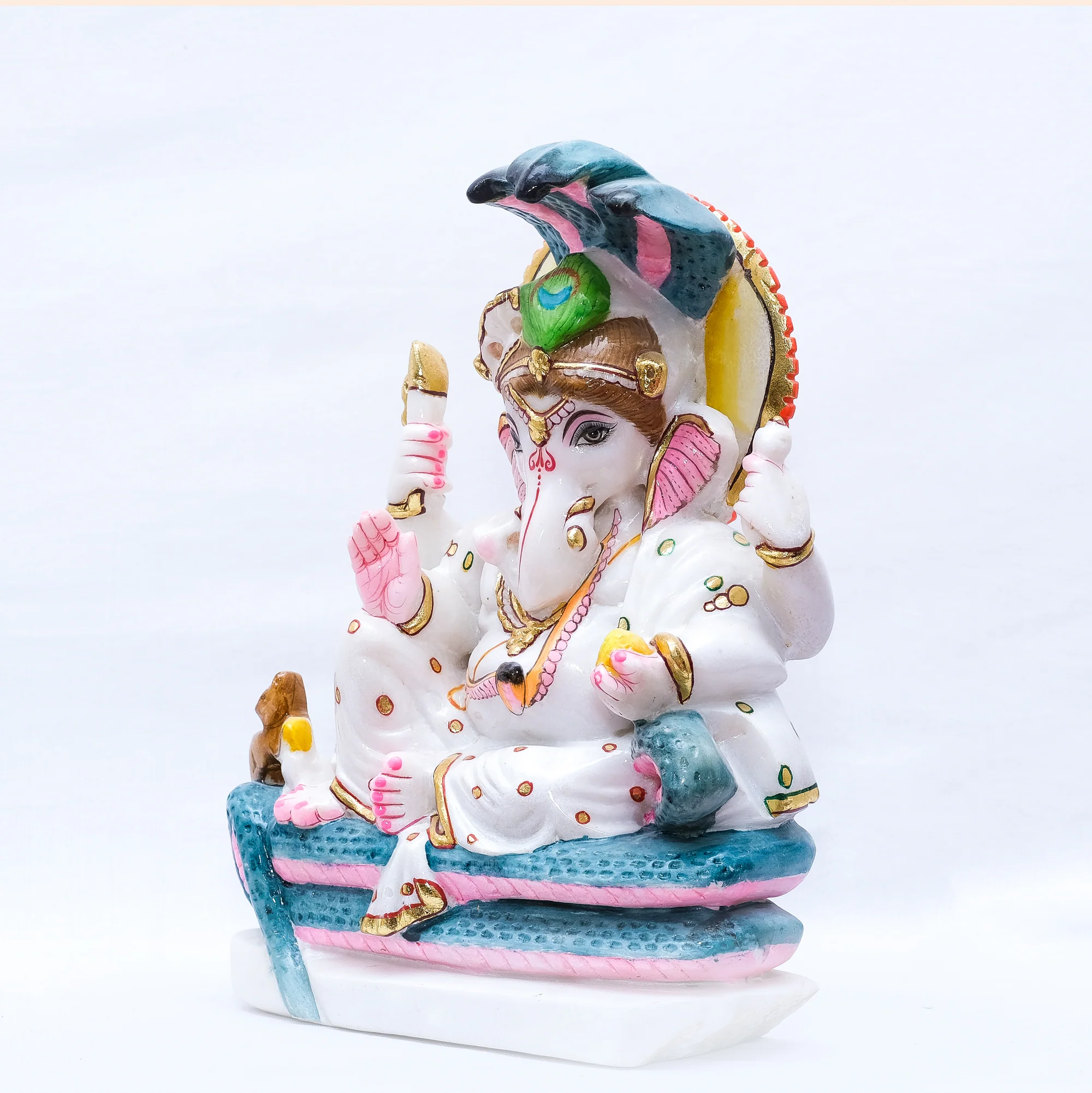 Vighnaharta Ganesh Ji is revered as the guardian who protects homes from negative energies. Placing this idol, with Lord Ganesh seated atop serpents, near the main entrance is believed to ward off evil spirits and invite peace and positivity into your home."