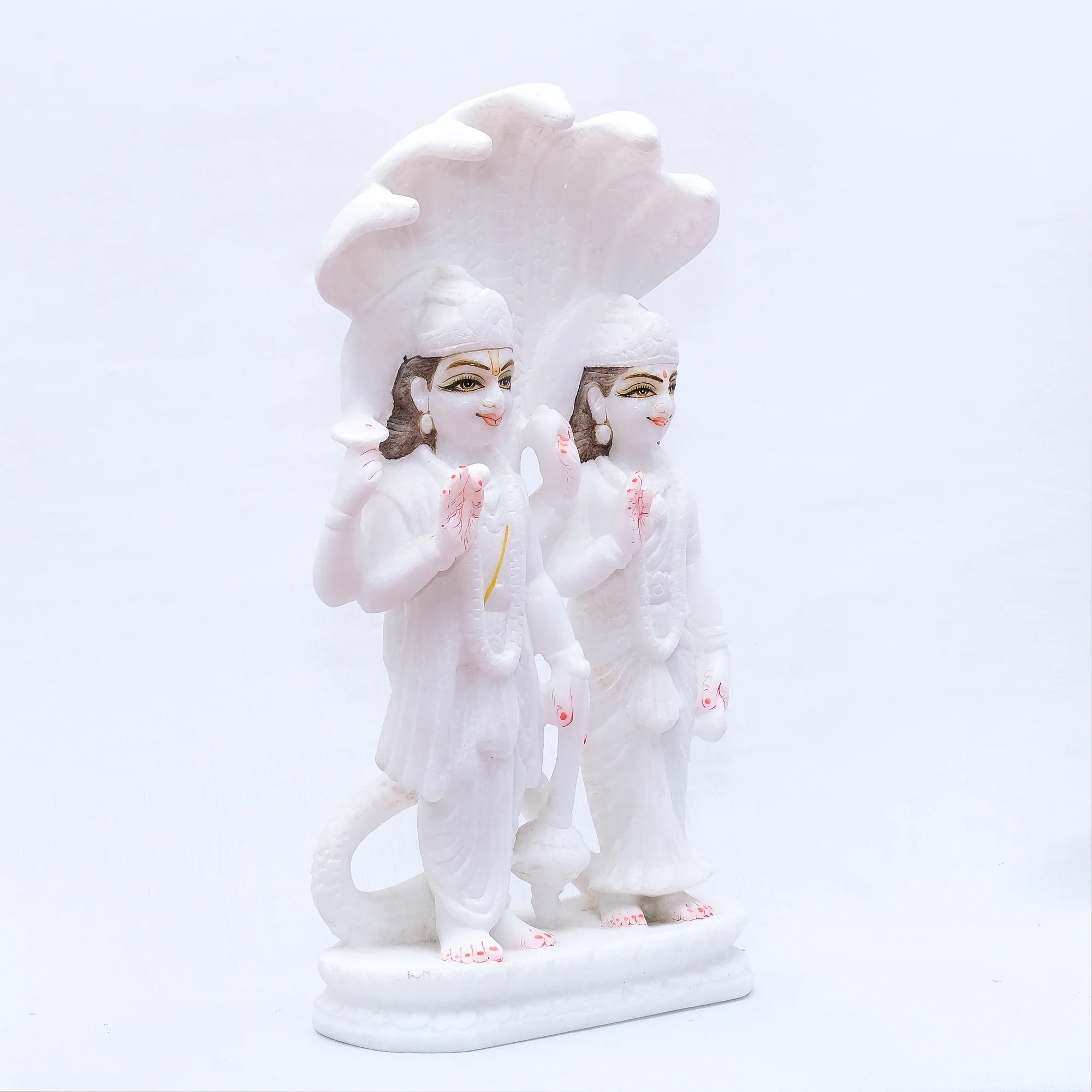 A standing idol of Lord Hanuman, the devoted disciple of Lord Ram, is believed to protect against negative energies and invite prosperity into your home. Worshiping him helps cleanse past sins and brings peace, purity, and spiritual joy to one's life.