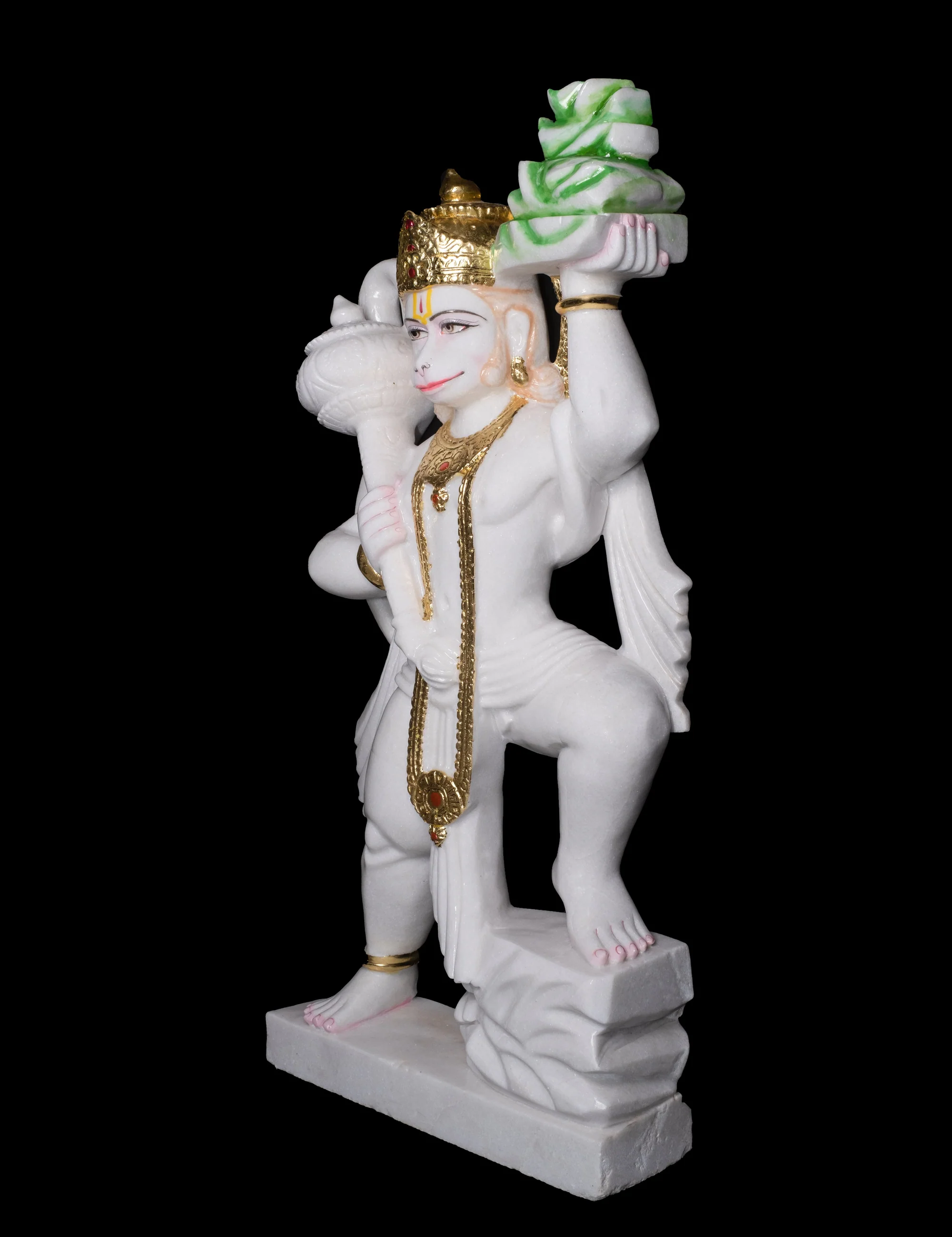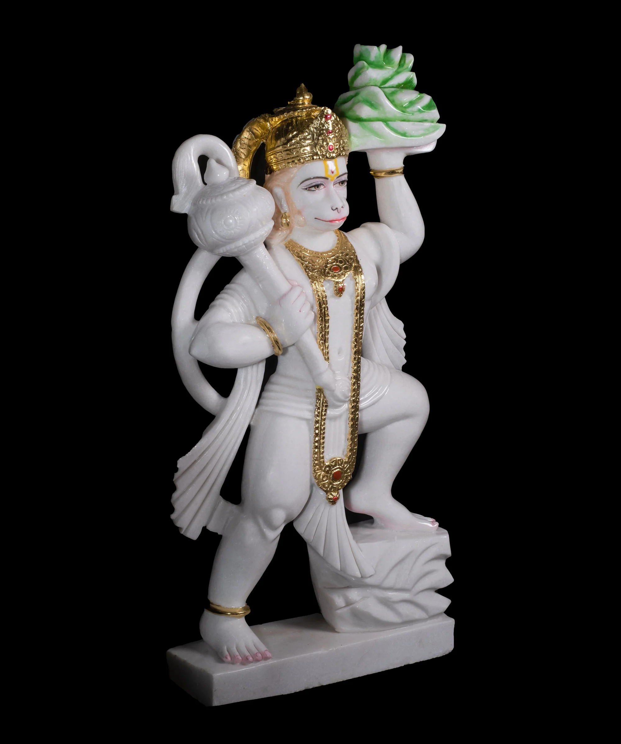 This majestic standing statue of Lord Hanuman, crafted from premium white Vietnam marble, beautifully captures the spirit of unwavering devotion, inner strength, and discipline. Revered as the devoted follower of Lord Rama, Hanuman symbolizes protection and courage. Ideal for placing in your home temple or sacred space, this statue also makes a meaningful and divine gift for weddings, housewarmings, and other auspicious occasions.