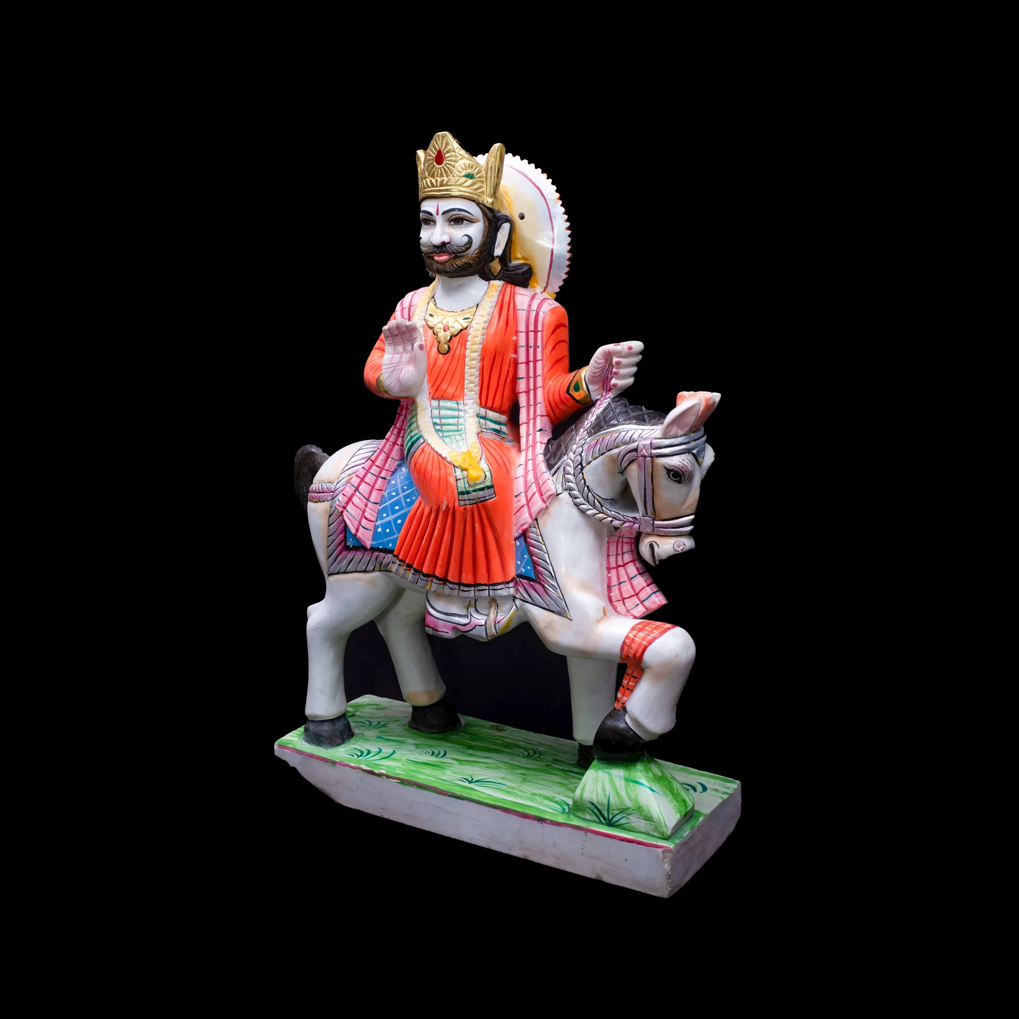 Ramdev Ji, a revered 14th-century ruler, dedicated his life to uplifting the poor and marginalized. Honored for his compassion and service, he is worshipped as a folk deity in Rajasthan and Gujarat. If you are a devotee, bring home this beautifully crafted marble statue and invite his blessings into your space.